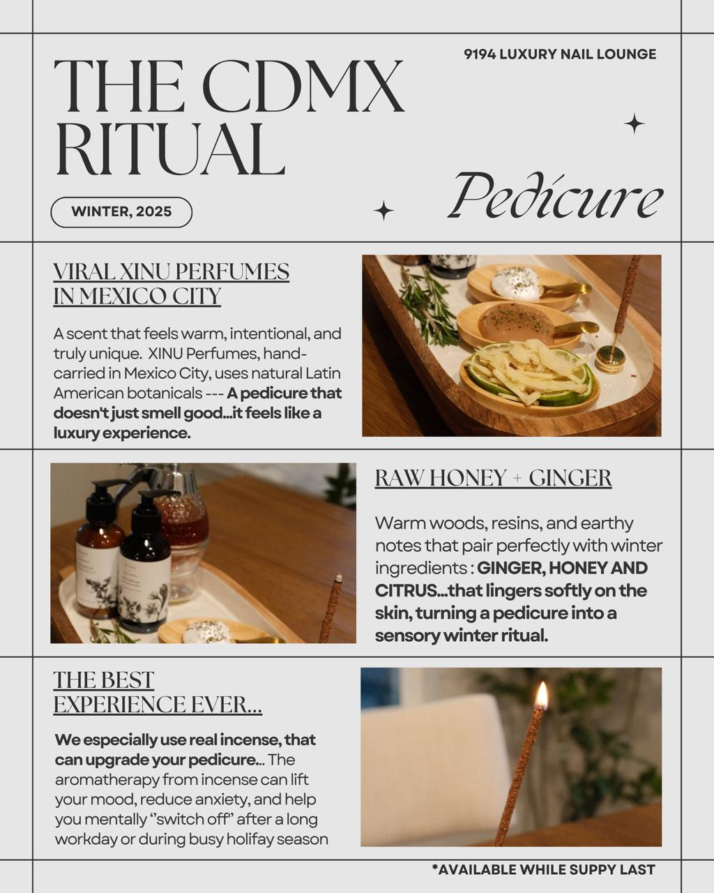 9194'S SIGNATURE Experience our luxury Wild Orchid Therapy Pedicure: a soothing Jelly Spa Bath with rose petals, orange, and champagne soak; orchid-infused scrub; collagen socks; and a relaxing massage with orchid lotion and hot stones. Follow with a hydrating leg mask wrapped in a warm towel, and finish with a final hot towel treatment. Pure bliss for your feet! | $70 | $71.40 |
